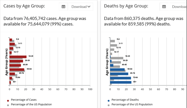 Compared to the delta variant wave we encountered in 2021, omicron admissions have been higher for people younger than 30 and older than 69.