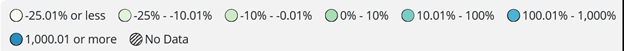 The locations with the largest increases are in the Panhandle, ranging from 58–275%: