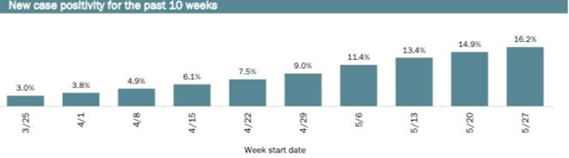 Public health experts view a positivity rate of 5% or below sufficient to capture all Covid cases.