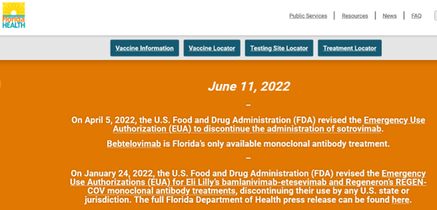 Florida Health: Florida to Open Additional Monoclonal Antibody Therapy Treatment Sites