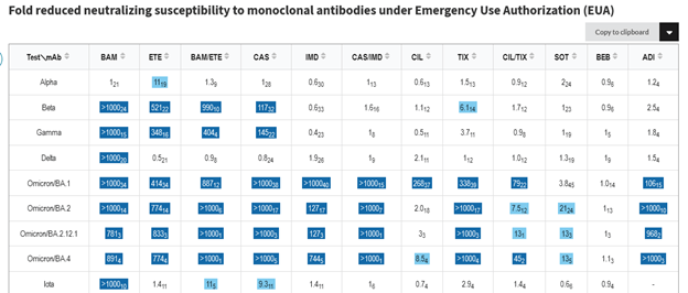 A different monoclonal antibody called Bebtelovimab neutralizes omicron BA.1, BA.2, BA.2.12.1, and BA.4.