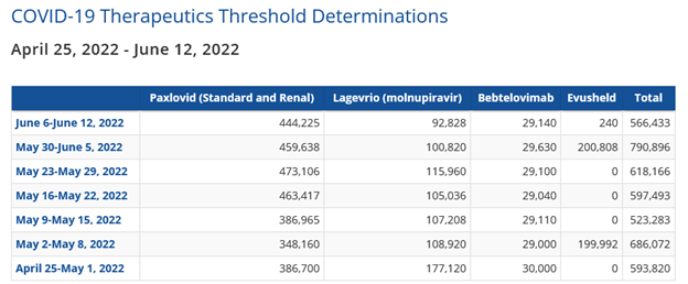 Public Health Emergency: State/Territory-Coordinated Weekly Distribution of COVID-19 Therapeutics