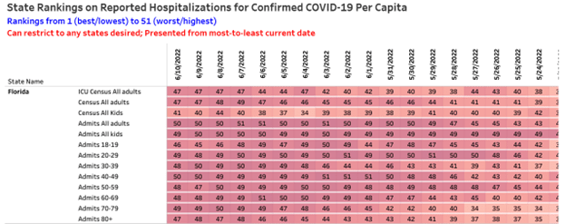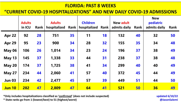 On June 10th, Florida was the 5th worst overall for Covid inpatients and adults in the ICU.
