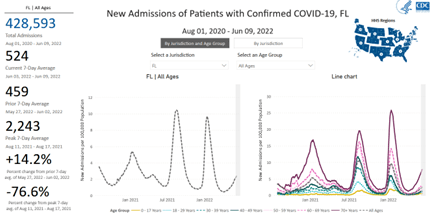 You can find more detailed hospitalization statistics on the same CDC COVID Data Tracker, choosing Florida as the Jurisdiction and stratifying by any age: