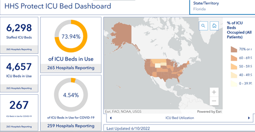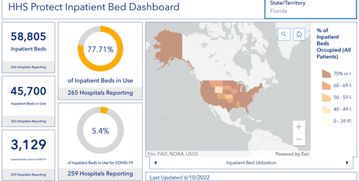 On the morning of June 10, 2022, 78% of hospital beds in Florida were full, the same as last week.