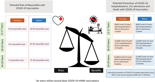 Covid infection is six times as likely to cause myocarditis compared to vaccination, and it tends to be more severe when viral-induced.