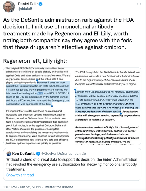 Daniel Dale: DeSantis vs Regeneron and Lilly