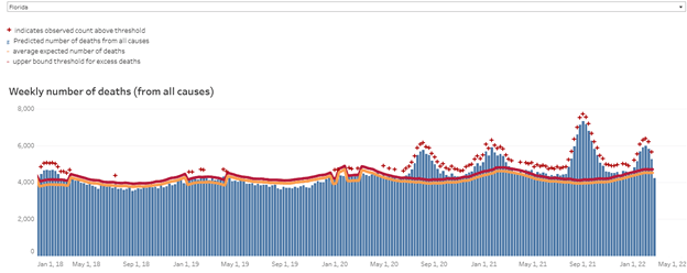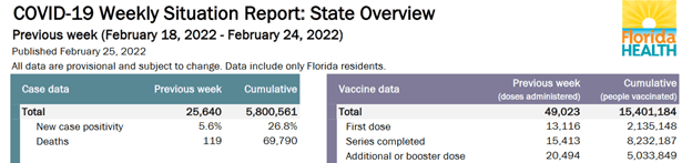 Until January 1, 2022, Florida was the only state in the US which was releasing statistics on a weekly basis. Tennessee has now switched to that schedule. Information available in Florida’s reports is far more limited than what the state formerly provided.