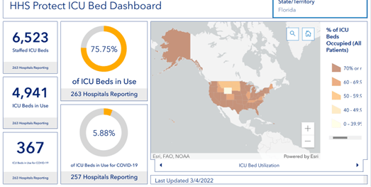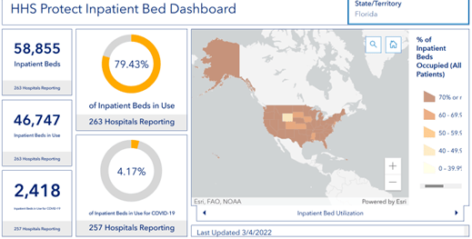 - On 3-4-22, 79% of hospital beds in Florida were full; 4% used by Covid patients.