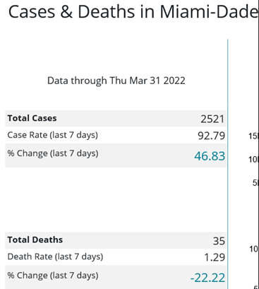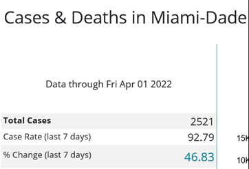 With cases rising sharply in Miami-Dade County (47%), anyone 50+ is eligible for a second booster shot. I strongly recommend getting one now, especially if you have not had omicron.