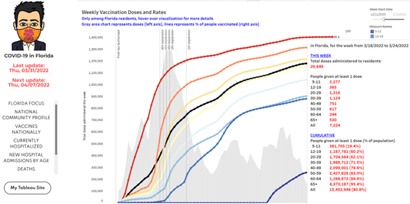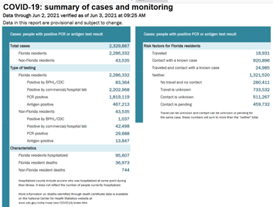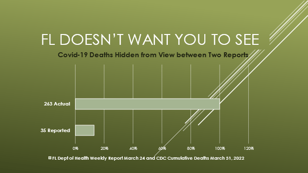 - On 3-25-22, reporters revealed over 600,000 snowbirds are counted in state vaccination statistics while omitting cases and deaths among them from Florida’s reports.