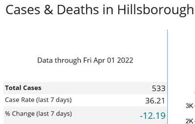- Hillsborough County had a 12% drop in cases to 533.
