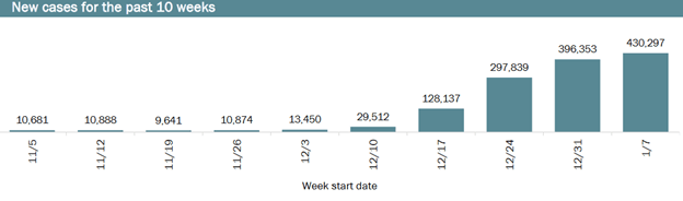 Public health experts view a positivity rate of 5% or below sufficient to capture all Covid cases. During that same period ending on December 23rd, the positivity rate rose from 2.6% to 13.9%.