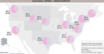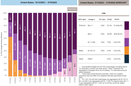 A newer subvariant called BA.2 was first detected in the US on January 15th. As of March 26th, it has become the dominant variant in the US: