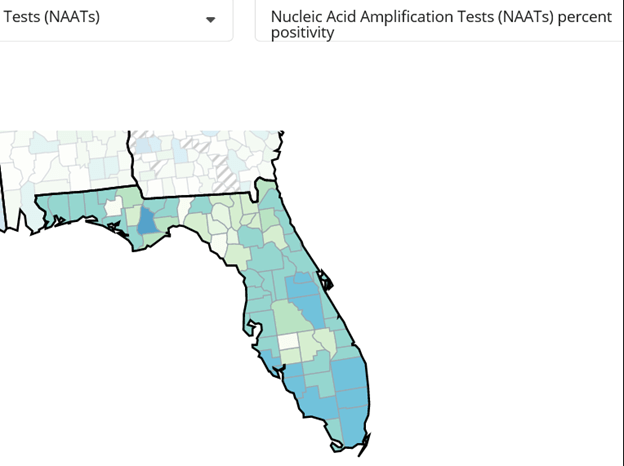 CDC: Florida Change in Weekly Percentage of Positivity by County