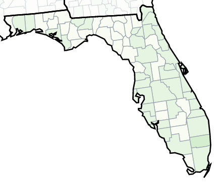 - 2/3 of Florida counties are above the 5% threshold; 20 are above 10%.
