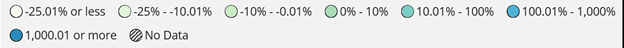 This is the percentage of change in hospital admissions by county. The highest increases are concentrated in the northern part of the state: