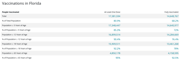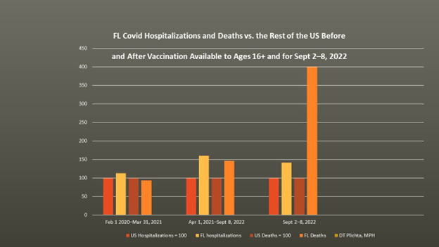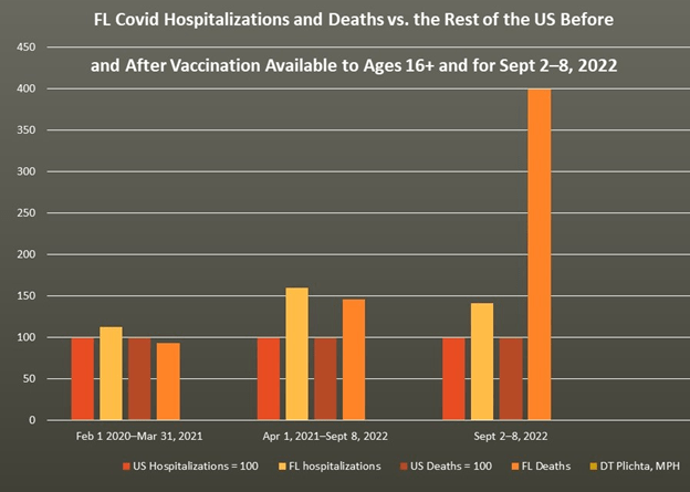 Since everyone 16+ became eligible for vaccination on April 1, 2021, people in Florida were 60% more likely to require Covid hospitalization than people in the rest of the US.