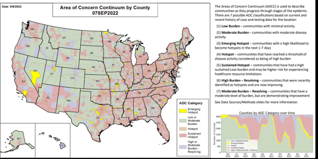 On September 8th, the CDC deemed almost all of Florida as a sustained or resolving hotspot. A few rural counties have improved to the “low or moderate burden” category: