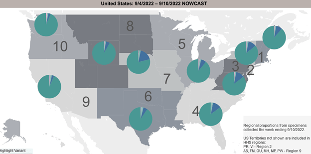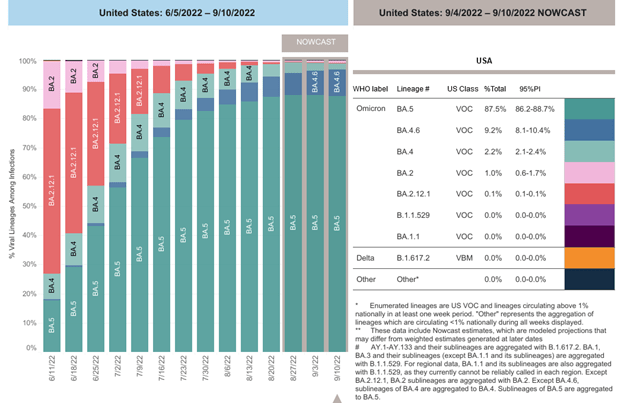 On September 10, 2022, 100% of sequenced samples in the US and in the region which includes Florida were BA.2, BA.4, BA.4.6, or BA.5.