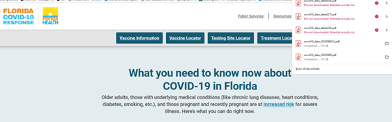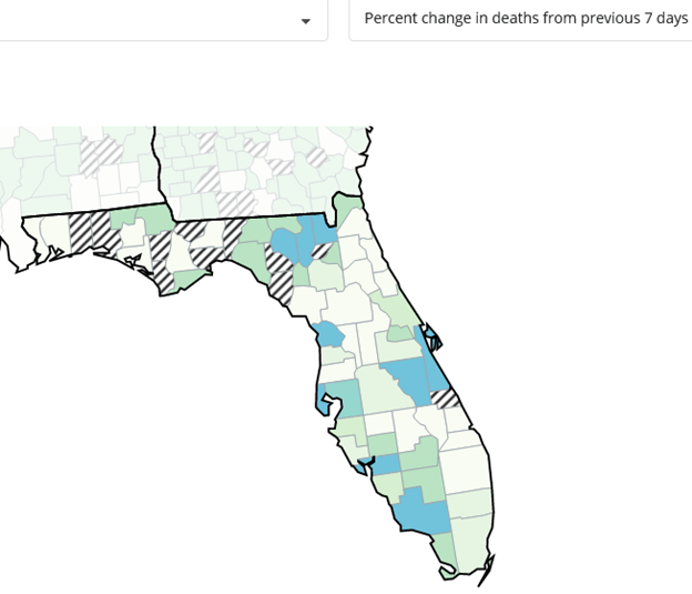 Beginning in June 2021, Florida removed all archived Covid data from their web site. Until March 17th, they replaced the statistics from the previous week with a new report. Now that occurs every two weeks.