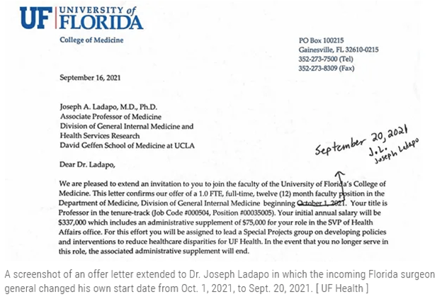 Scott Atlas, the chief architect of the herd immunity plan, advised the DeSantis Administration before joining the federal government. Dr. Joseph Ladapo also promoted this “low testing/no masks/no lockdown” strategy to the White House before becoming the state’s surgeon general.