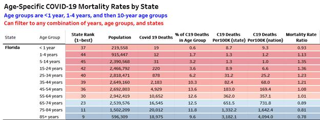 Overall, 61 Floridians <15 have died from Covid. So far, 19 permanent Florida residents under 1 year old have died. Florida children aged 1–4 have a death rate 15% worse than the national average, with 12 deaths.