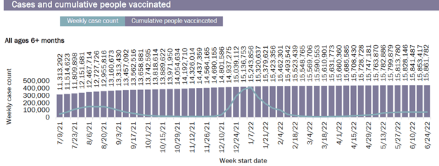 There were more cumulative cases reported for children under five in the June 16th report (192,875) than in the June 30th report (191,640). That gives us -1,235 for June 17–23, when the state was hindering vaccination of that age group. To my knowledge, that has not been corrected.