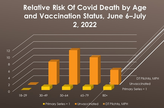 In the US during June 26–July 2, 2022, 2 boosters prevented 94% of deaths; 1 booster prevented 84%; and a primary series prevented 80% of Covid fatalities.