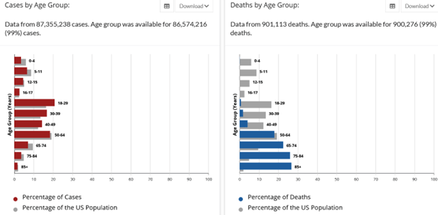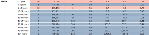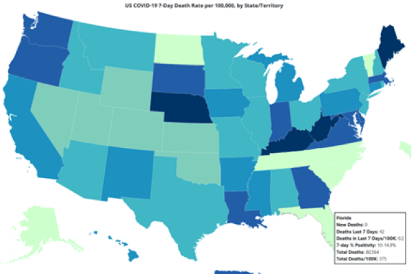Despite having a higher proportion of senior citizens and similar age-related demographics, Maine’s per capita Covid death rate is about half of Florida’s (190 vs. 375/100,000).