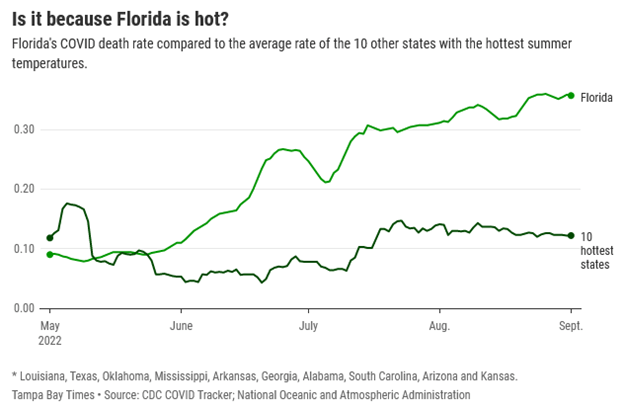 During May through August, Florida’s death rate was 3x that of the other 10 states with the largest populations, the highest temperatures, and the oldest people.