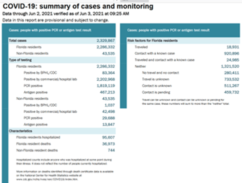 Until June 2021, Florida reported Covid statistics every day with an online database.