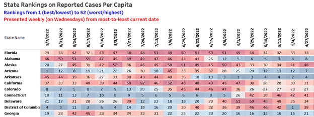 During June 2–August 16, 2022, there were only 4 days that the state did not rank last.