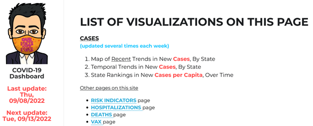 To check on other locations in the US, I recommend finding the statistical category you’re seeking on this post and then clicking on Dr. Salemi’s or the CDC’s site and entering a different state or county.