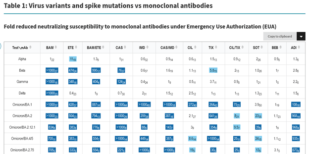 The August 22, 2022, update of this chart indicates that a different monoclonal antibody called Bebtelovimab neutralizes omicron BA.2, BA.4 and BA.5.