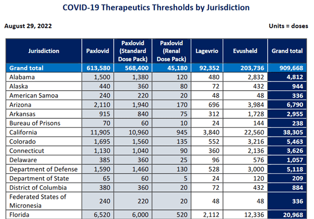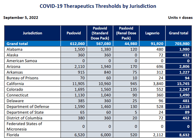Here is the most recent federal allocation of 8,717 Covid-specific treatments to Florida:
