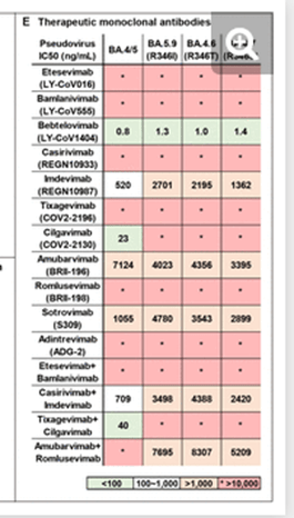 This chart from a preprint study indicates that Bebtelovimab is effective against BA.4.6: