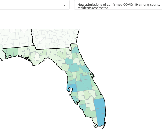 CDC: Florida Confirmed COVID-19 New Hospital Admissions by County