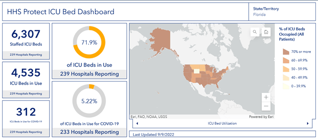Many hospitals are publishing their own occupancy statistics. For example, Tampa General Hospital released this on September 9th: