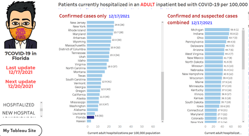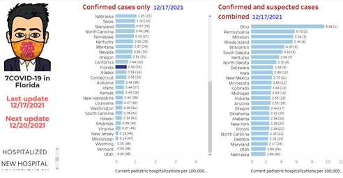 Florida’s pediatric hospitalization rate rose from 38th worst on December 13th to 33rd on December 17th (from 0.54 to 0.56/100,000):