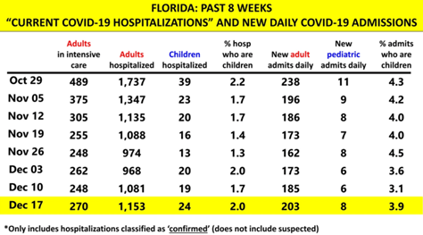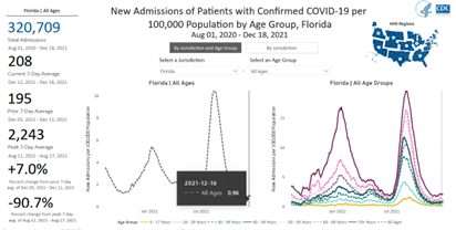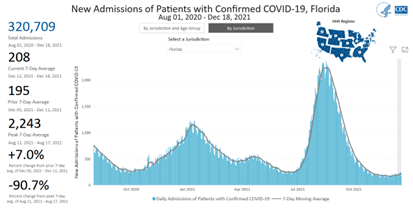 For August 1, 2020–December 16, 2021, Florida has had 320,289 new admissions for Covid patients. This represents 9.0% of all Covid admissions in the US for 6.6% of the US population: