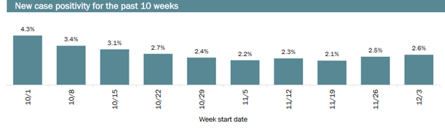 Dr. Jason Salemi, a professor from the University of South Florida, has been compiling data from the state since May 28th. His county-level data are quite helpful. It indicates that Hillsborough County dropped from 3.2% to 3.0% during November 25th–December 9th.