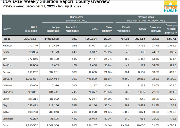 December 30, 2021 Florida Statistics: What Is Really Happening?