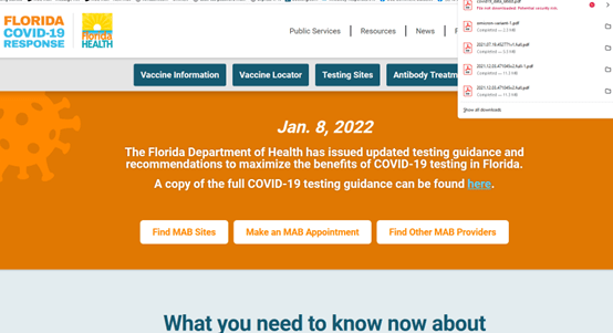 Until yesterday, the state continued to emphasize monoclonal antibody treatment. Mutations which have resulted in the omicron variant render ineffective almost all the monoclonal antibodies currently in use. In the region which includes Florida, 98% of cases are now due to that viral strain:
