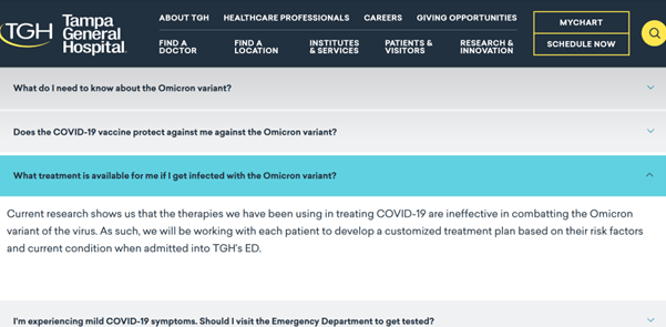 Even Tampa General Hospital is warning prospective patients not to rely upon that treatment: