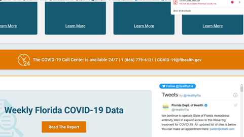 Florida is the only state in the US which is releasing statistics on a weekly, not daily, basis. Since Saturday, I have made multiple attempts to access the FL Dept of Health Weekly Report and my browser will not download it due to a potential security risk:
