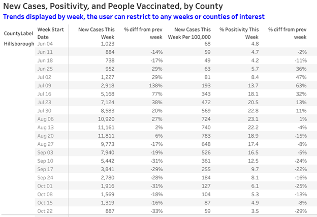 You can click on the maps for detailed information on each county. He also lists the data for each week since May 28, 2021, when Florida deleted its daily dashboard.