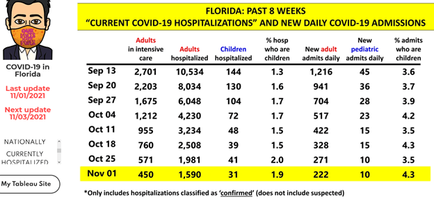 On October 28th, there were 1.20 new admissions/100,000 Floridians; 1.43, the week before: