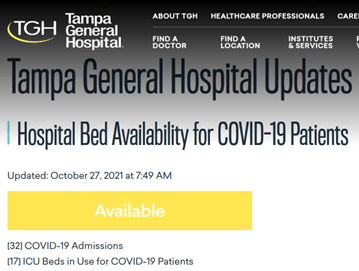 Tampa General : Hospital Bed Availability for COVID-19 Patients