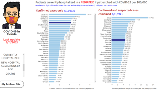 Over the past week, Florida improved from the worst hospitalization rate for adults in the nation to fourth worst; the state remains the fifth worst for children: